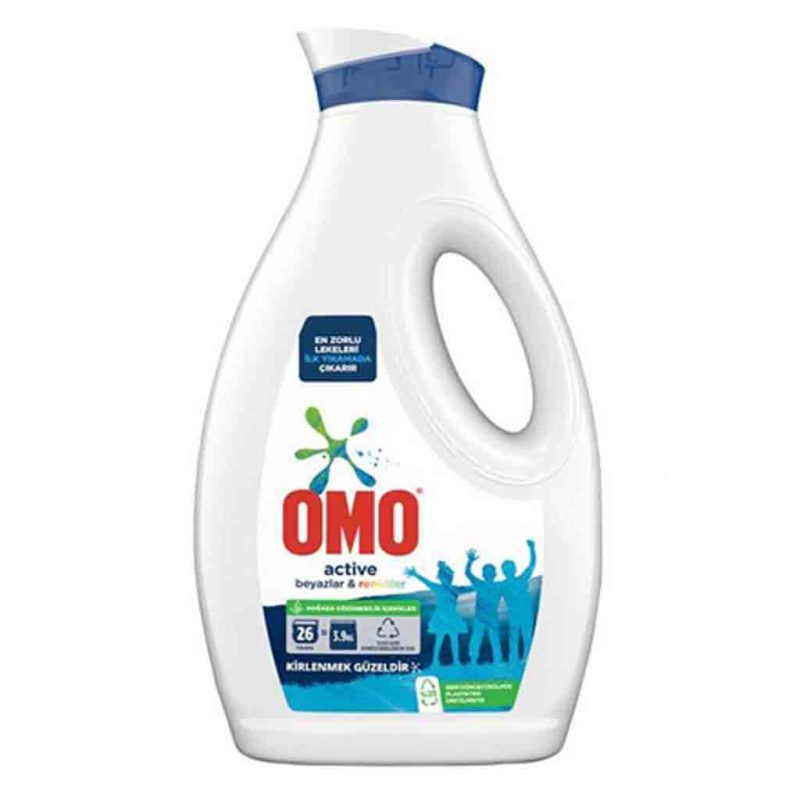 مایع لباسشویی اومو Omo Active Beyazlar & Renkliler مخصوص لباسهای سفید و رنگی 26 بار شستشو 1/69 لیتر
